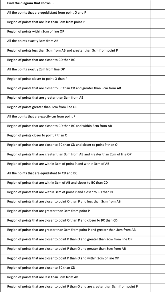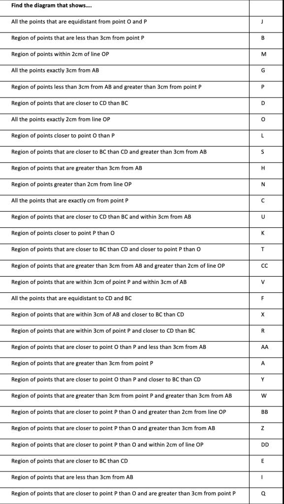 In the fifth diagram they had to identify points exactly 1cm from the shape A