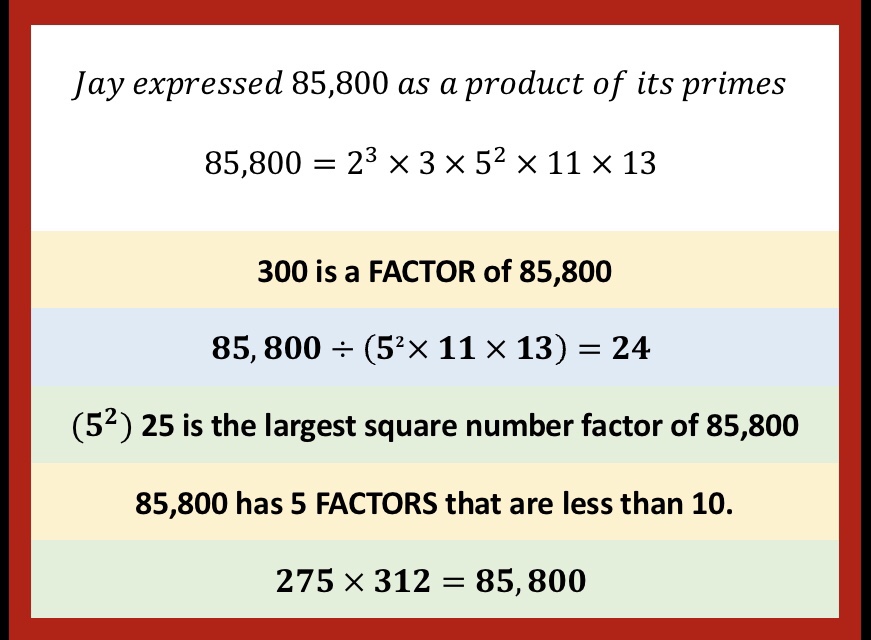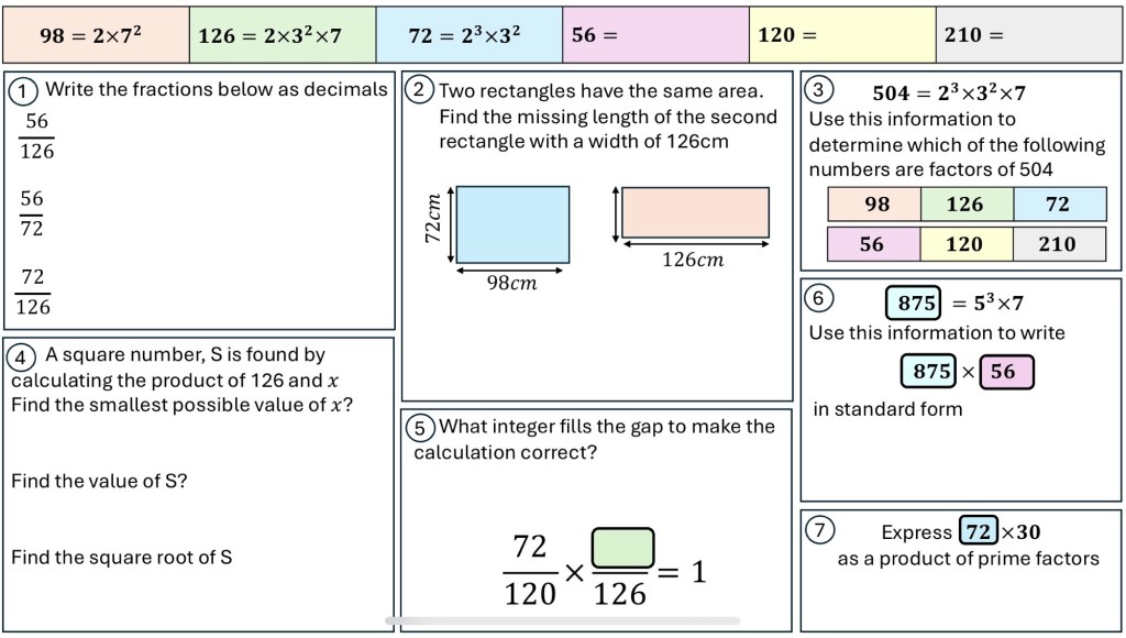 There are many ways to introduce and express numbers as a product of prime factors but recently I have been looking at questions that use prime factor form.