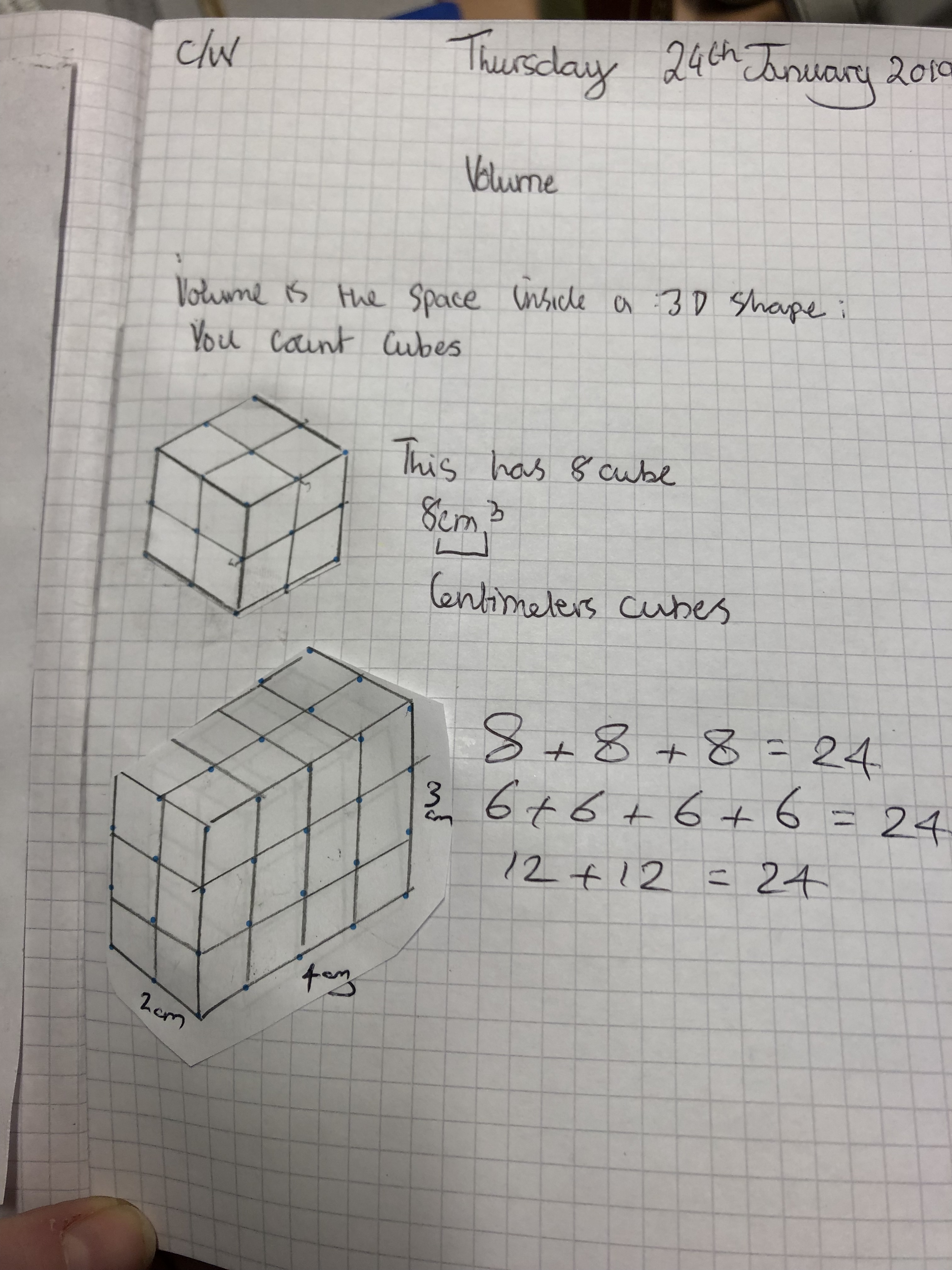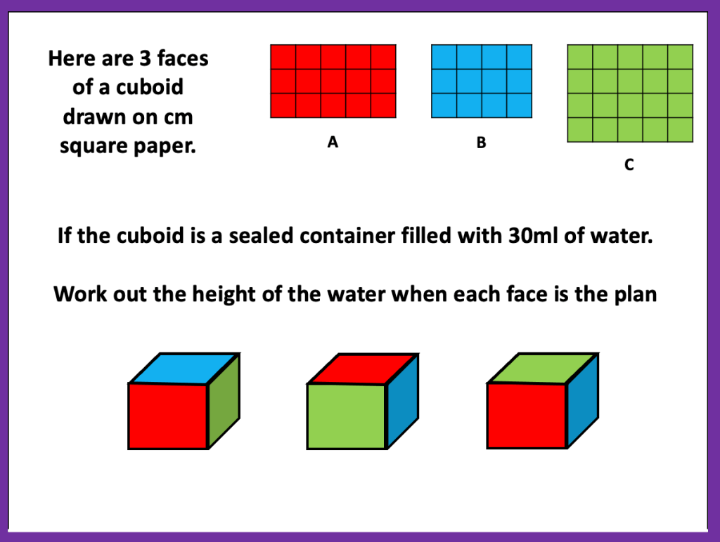 Students have used Plan, Elevation and Isometric drawings to help them understand Volume of Cuboids. The discussed the idea of layers of cubes and how many cubes in each layer.