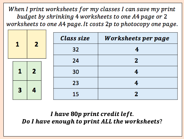 The other issue I find with estimation is students are not always clear whether the answer is an over or under estimate and when they have an answer that’s a decimal  students don’t know when to round up or down. For example