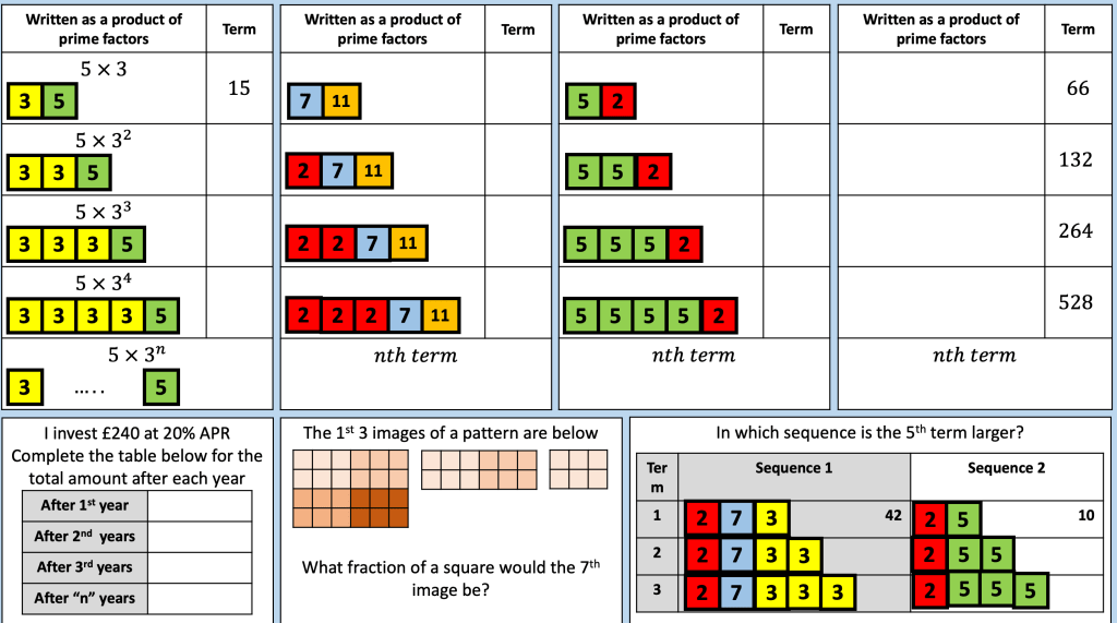 Students quickly spotted things about the diagram like, there was a copy of 3’s of each triangle and the connection between each number was x3. They spotted things like 3 squared was 9 and 3 cubed was 27 so the numbers were all powers of 3.