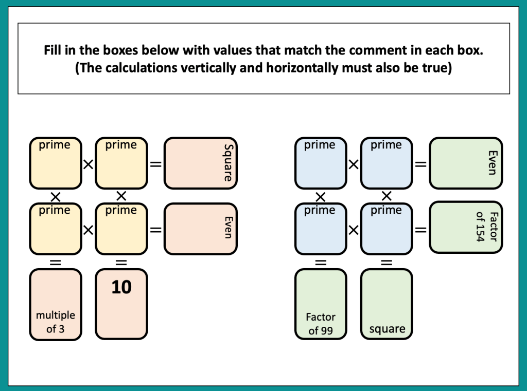 Standard Posted by Miss Konstantine Posted on December 19, 2018 Posted under Uncategorized Comments Leave a comment Prime and Square Puzzle prime-puzzles-1Download prime-puzzlesDownload A little puzzle that doesn’t have a unique solution. Students in my year 9 class enjoyed solving it Share this: Click to share on X (Opens in new window) X Click to share on Facebook (Opens in new window) Facebook Like Loading...