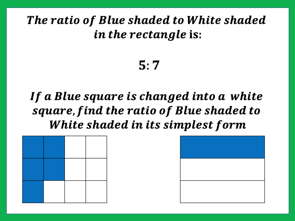 I was thinking about how it can be linked to fractions that are shaded. When we want to compare fractions we can create common denominators and when we want to compare ratios we scale the ratios so they have the same number of parts… 3 : 2 has 2 parts and 7 : 8 has 15 parts. If we multiply 3 : 2 by 3 then we have a ratio 9 : 6.