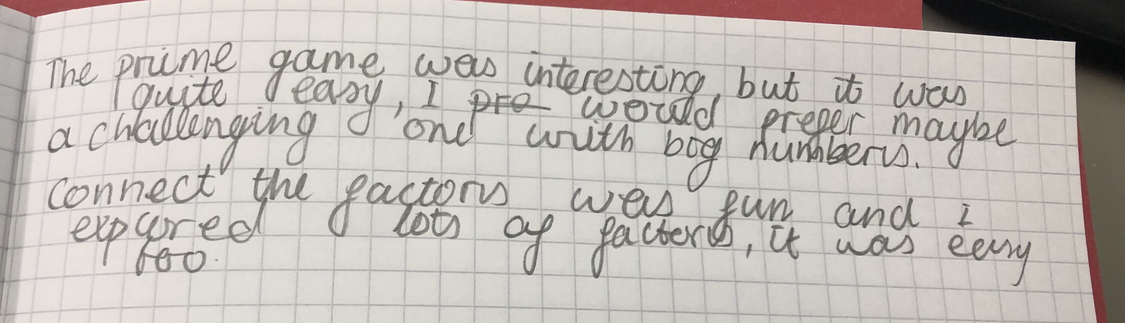 Space was limited so during the game my daughter and I had made piles of our pairs rather than place them side by side. So when the game had ended we both piled up our cards and we looked at the two piles. She announced “we both won because my pile is the same as yours. They are both the same tall”