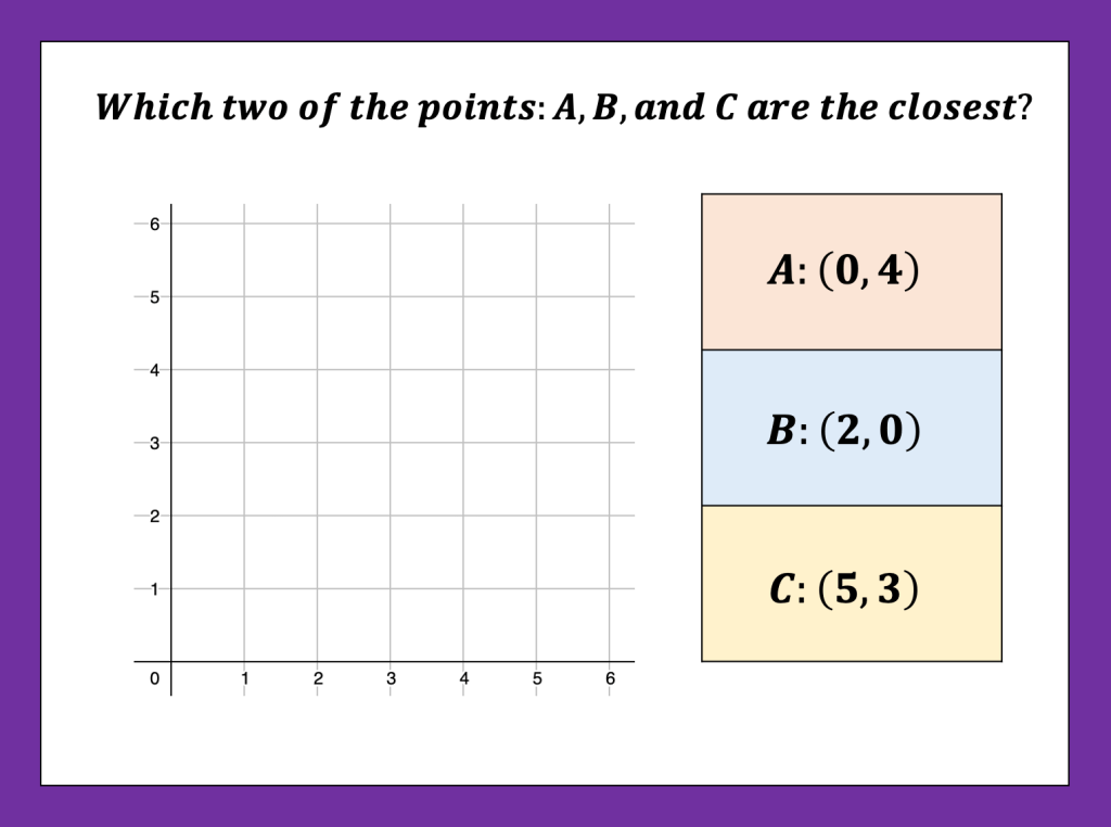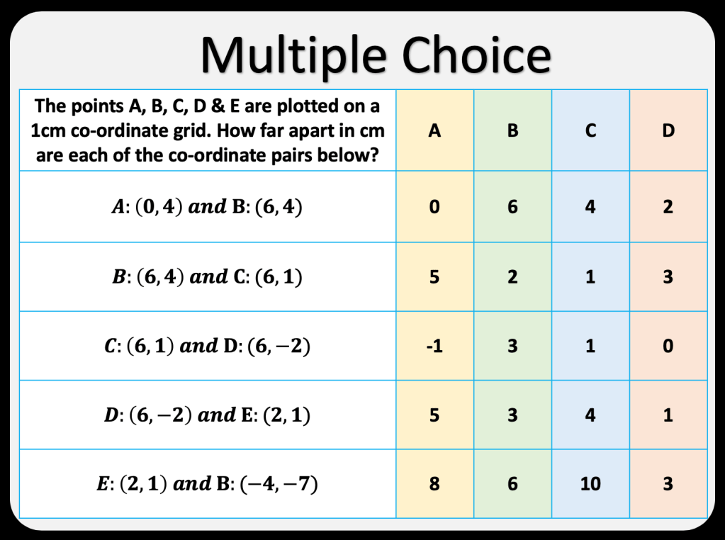 Starting out with Vectors with one of my year 11 classes. I thought I’d start with co-ordinates and looking at the distance between them. Then discuss vectors and how they differ from co-ordinates.